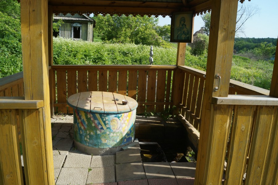 А чуть ниже по бегущему родниковому ручью устроена открытая купель, обнесенная со стороны источника и села загородками из досок – раздеваться можно смело, никто не увидит.