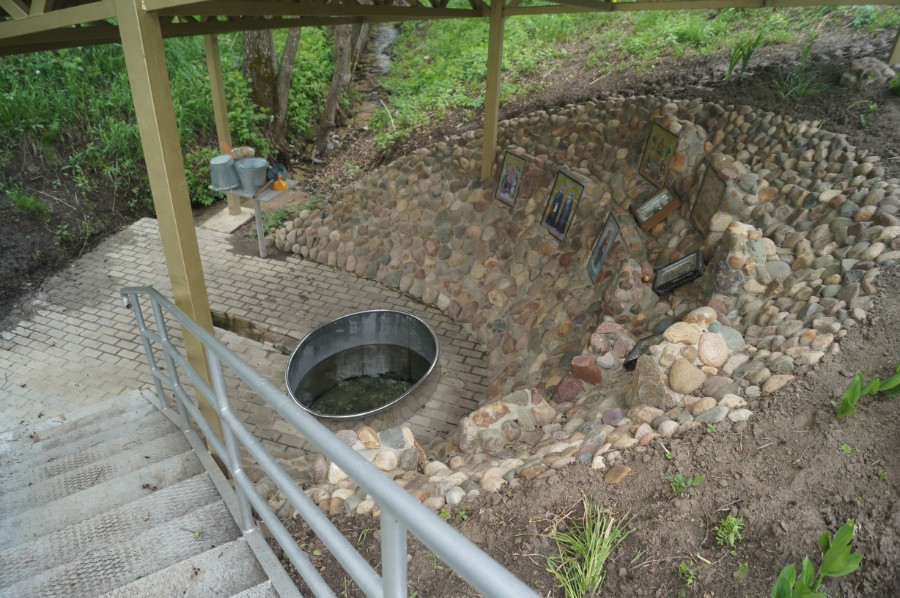 На источнике есть хорошо проточная двойная купель, часовня и удобное место для набора воды.