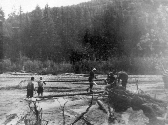 Общими силами вытащили застрявшие в завале рюкзаки, переправили четверку людей по "мосту" через протоку, и снова собрались все вместе... В разговорах чаще всего звучало слово "Стихия!"..