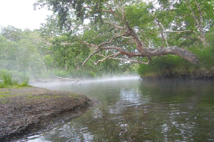 Как написано в отчете, наилучшее место для купания – узкое место реки чуть ниже горячего озера.