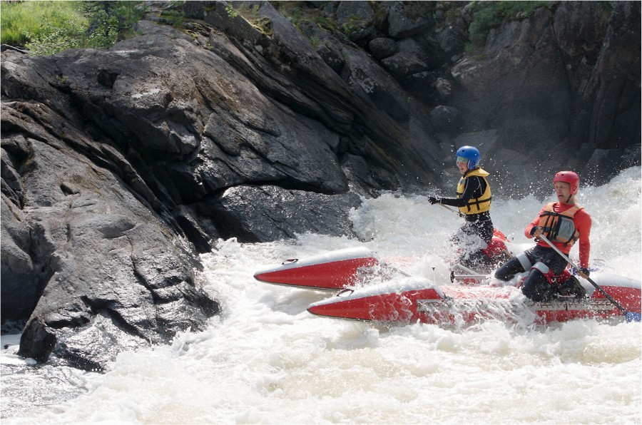На него наехали в разной степени всеми судами во всех попытках. В сливе по нашей воде справа торчал довольно криминальный камень, а внизу довольно мощная струя слева бросала в этот прижим. Видел, кстати, видео прохождения где-то на 2-3 недели раньше, т.е. до дождей. Там боковая струя отсутствовала, и каты чистенько сливались в проход... где садились на камни прямо по центру струи. | |||