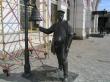 Выставка каменных скульптур. Видна колокольня Вознесенского храма