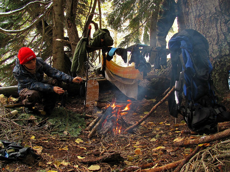 Фотография: Трудный костёр в мокром лесу.