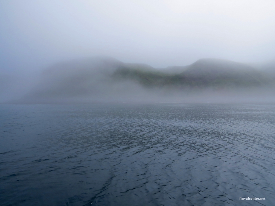 К острову Онекотан подошли в тумане. На Курилах обычно так: если штиль, то туман, а ясная погода - ветер)) Бывают, конечно и исключения.