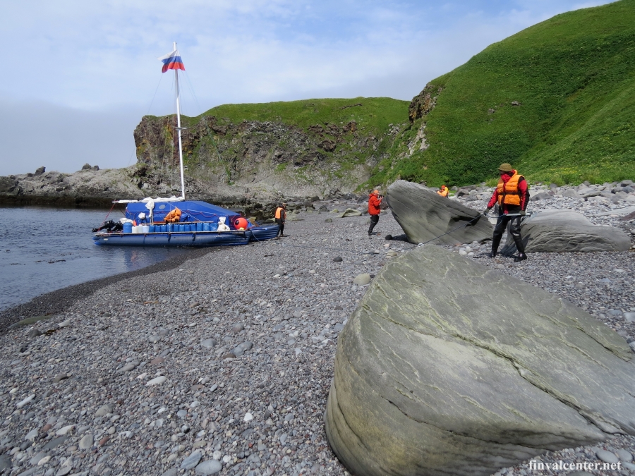 В бухте Шестакова встать не смогли - сильный накат. Встали в безымянном "закутке" за рифами, максимально близко к вулкану Пик Креницына. Этот день порадовал нас солнцем и дал возможность забраться на вулкан.