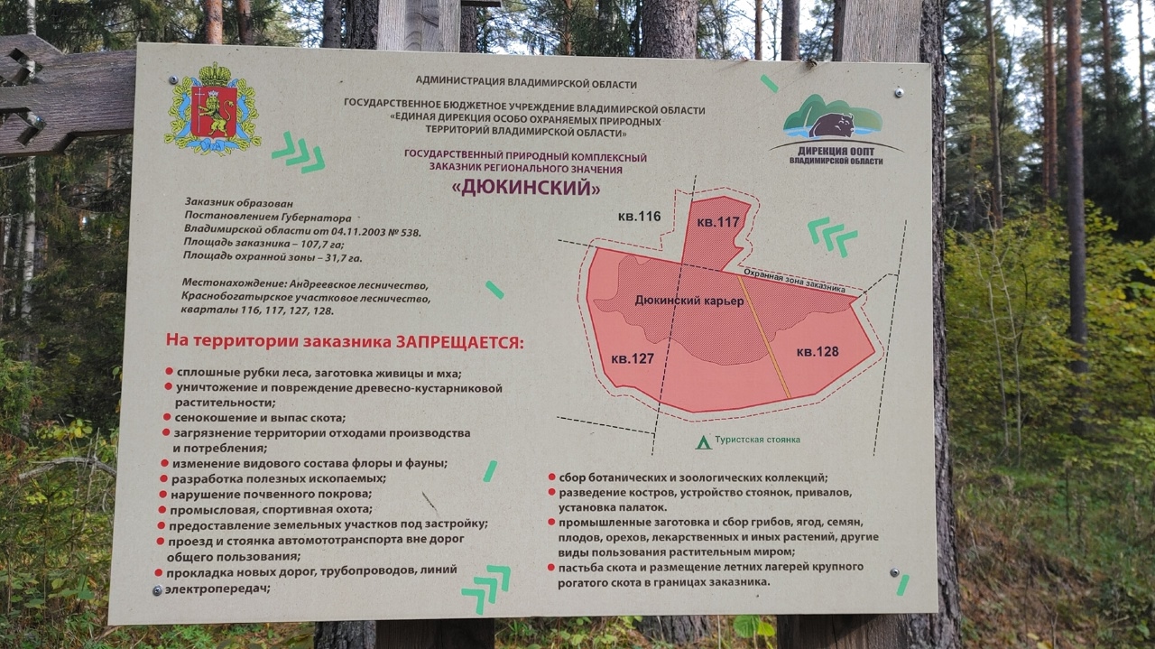 Фотография: Информационный стенд у Государственного природного комплексного заказника регионального значения "Дюкинский" (карьер)