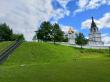 Вид на Троицкий собор снизу от речки Гридевки. Троице-Сыпанов Пахомиево-Нерехтенский женский моанстырь в селе Троица