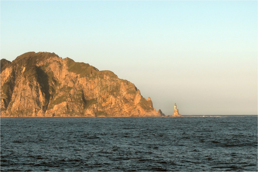 "Игорь Фархутдинов". Во время перехода с Сахалина на о. Кунашир, с борта теплохода отлично виден известный памятник японской инженерной мысли - маяк Анива.