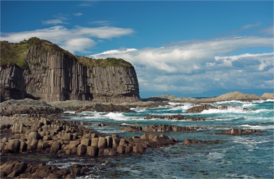 Мыс Столбчатый сложен наслоениями базальтовых лав вулкана Менделеева с хорошо выраженной столбчатой отдельностью в виде пяти- и шестигранных колонн.