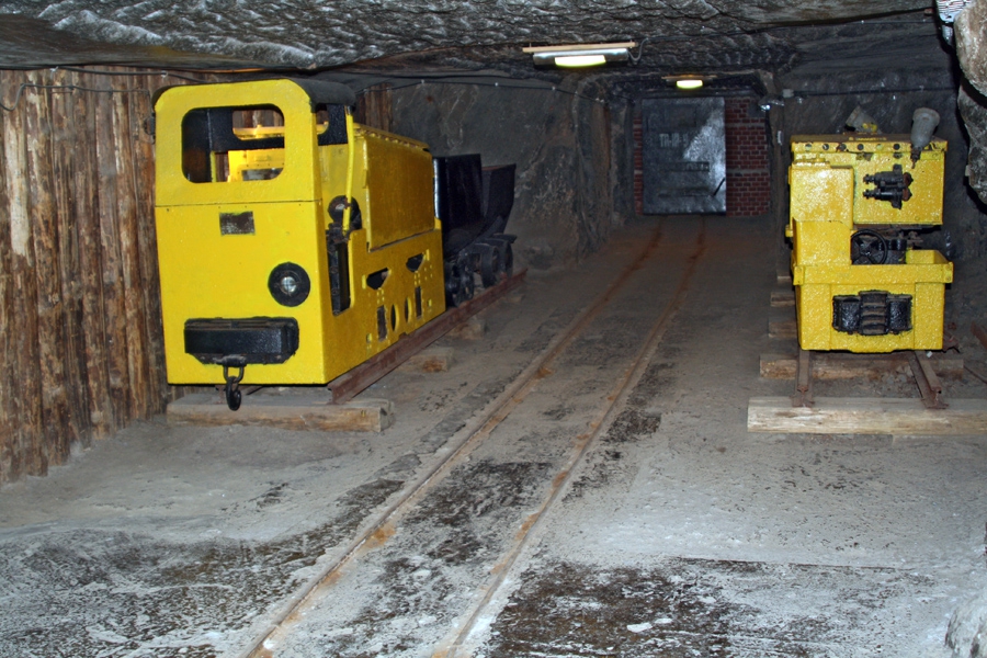 Краткое описание:Они находятся на перекрестке продольного штрека Казанув и поперечного штрека Понятовский на глубине 124,3 м. На перекрестке демонстрируются машины, предназначенные для вертикальной подземной транспортировки. С левой стороны Ldag 05, современный локомотив с электроприводом. Использовался для пассажирского или товарного транспорта, в зависимости от рода прицепливаемых вагончиков. С правой стороны - аккумуляторный локомотив типа «карлик» 1950-х годов.
