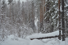 Постепенно надежда, что мы успеваем дойти за сегодня, укрепляется - после лесоучастка буранка становится более выраженной, и хотя и уводит нас с запланированного трека, зато прямиком выводит на Главный ус (центральную транспортную магистраль Унжлага). Дорога здесь хорошо укатана буранами, и по ней мы довольно быстро нагоняем график. Останавливаться на перекус практически нереально – очень холодно, но есть-то хочется. Восстановить теплоту ног и рук после остановки можно только с помощью интенсивного хода, благо буранка это позволяет. На стоянку решено вставать, не доходя примерно 2-4 километра до пос. Северного. Уже темно. Да еще и батарейки начинают барахлить - все показывают, что разряжены, хотя и ехали в тепле на теле. А нет батареек, это значит, нет навигатора, нет фонарика. Как назло, на этом участке заканчивается хороший лес и начинается березняк с редкими включениями елок. При таком морозе это напрягает – нужен хороший костер, а в таком лесу без фонарика сушину найти трудно. Сходим с буранки в придорожный лес в надежде найти хоть что-то. В это время по дороге проносится мимо 8 снегоходов. Мелькает пораженческая мысль: «а ведь могли бы подвезти, можно было бы на постой напроситься…», но гоним ее прочь, да и снегоходы уже далеко. С дровами здесь как-то совсем туго… Так как в поисках сушины идем медленно, ноги начинают замерзать. Наконец-то находим какое-то полусломанное дерево, дальше искать сил нет. Я уже замерзла до такой степени, что от меня сегодня толку мало – единственная мысль: только спальник спасет меня. Срочно ставлю палатку и залезаю в него. Немного отпускает, жизнь возвращается, по ногам разливается тепло, но покидать спальник нет никакого желания, и приходится приложить неимоверные усилия, чтобы сделать это. К этому времени яма уже выкопана, дрова заготовлены, костер вовсю горит, а в котелке топится снег. Вечер и ночь проходят как обычно, спится хорошо и уютно. |